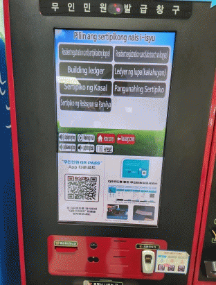 무인민원발급기 외국어 지원 서비스는 한국어 외에 중국어, 베트남어, 필리핀어, 일본어 등 4개 외국어 서비스 기능을 지원한다. 발급 가능 서류는 가족관계증명서, 주민등록등·초본, 기본증명서, 혼인관계증명서, 토지대장, 건축물대장 등 총 7종이다.