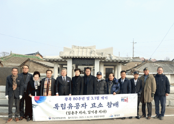 이번 독립유공자의 묘소 참배는 전남서부보훈지청과 함께 광복 80주년과 제106주년 3․1절을 맞이하여 우리 지역의 대표 독립유공자의 희생과 헌신을 기리기 위해 진행하였으며 영광군수, 전남서부보훈지청장(이향숙), 광복회 전라남도지부장(송인정), 영광군 보훈단체장을 비롯해 유족대표인 김주원, 김경신 등 관내 주민들이 참석했다.