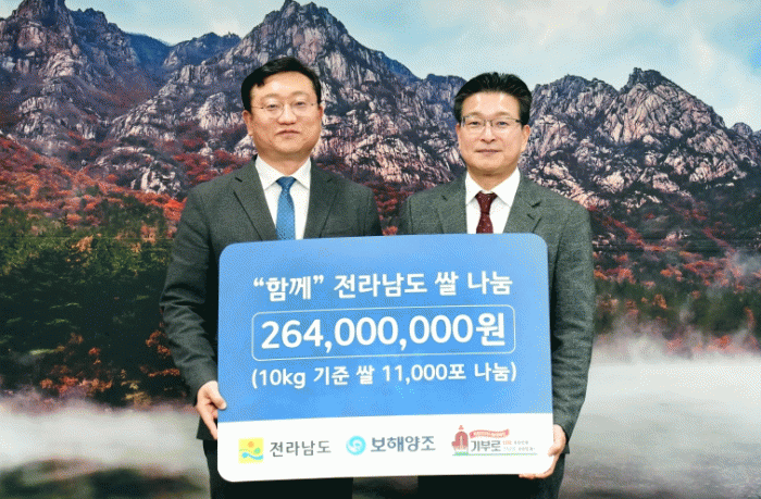 명창환 부지사는 “어려운 이웃을 위해 따뜻한 나눔을 실천한 보해양조(주)에 깊이 감사드린다”며 “춥고 어려운 겨울을 나는 사회복지시설과 소외계층에게 소중히 전달하겠다”고 말했다.