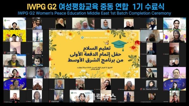 이번 행사는 IWPG 홍보 영상, 중동 평화교육 1기 하이라이트 영상, 글로벌2국 이서연 지국장 격려사, 수료생 대표 소감 발표, 수료생 축하 영상, 단체사진 촬영 순으로 진행했다.