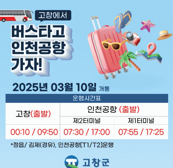 고창에서는 그동안 인천국제공항으로 곧장 가는 버스노선이 없었다. 해외를 나가려는 군민들은 무거운 짐을 끌고 인근 정읍이나 광주까지 나가야 하는 번거로움이 있었다.