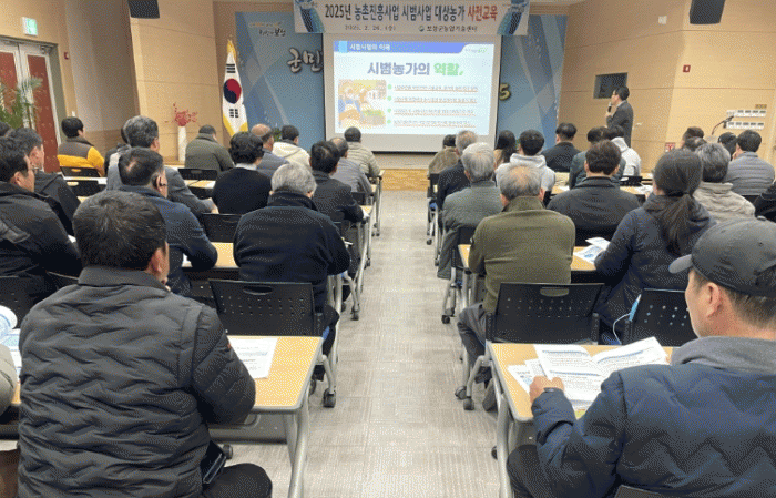 이번 사전교육에는 읍면 농민상담소장을 비롯해 2025년 시범사업에 선정된 대표 농가 78명이 참석했다.