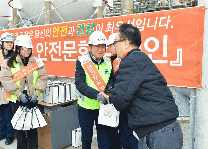여수시에 따르면 이날 캠페인에는 정기명 시장을 비롯해 이경근 고용노동부 여수지청장, 김병기 한국가스안전공사 전남동부지사장, 김성철 한국산업안전보건공단 전남동부지사장, 박진만 한국산업단지공단 전남지역본부장, 김대연 한국전기안전공사 여수지사장, 안인수 한화솔루션㈜ 총괄공장장, 임직원 등 50여 명이 참여했다.