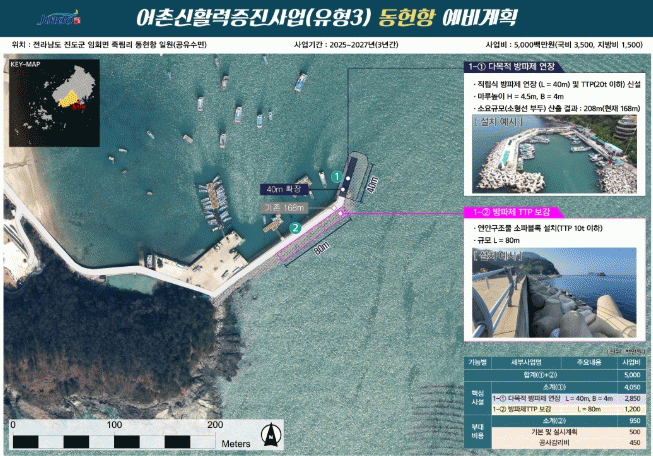 이번 공모를 통해 진도군은 어촌신활력증진사업이 시작된 2023년(유형3 2개소)부터 2024년(유형1 1개소, 유형3 1개소), 2025년(유형3 1개소)까지 선정돼 한 해도 빠지지 않고 3년 연속 선정되는 쾌거를 이루었다.