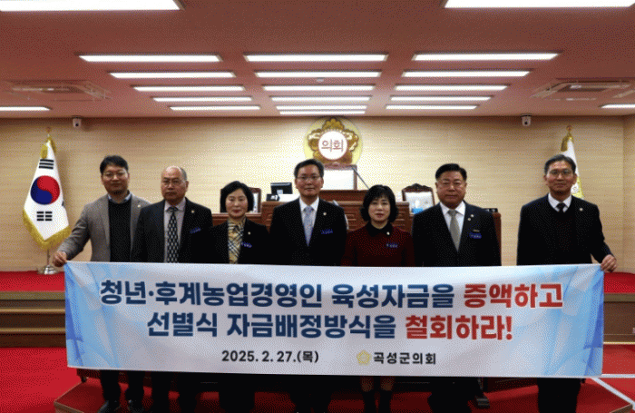 이에 곡성군의회는 △청년・후계농업경영인 육성자금 예산을 현실에 맞게 증액할 것 △자금 부족으로 피해를 입은 청년・후계농업경영인을 구제하기 위한 긴급 지원 방안을 마련할 것 △농업 현실을 반영하지 않은 자금 배정 방식 개편안을 철회할 것을 강력히 촉구했다.