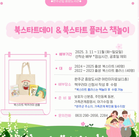북스타트 책꾸러미 신청기간 및 배부와 관련한 자세한 사항은 완주군 중앙도서관 홈페이지를 통해 참고 및 문의하면 된다.