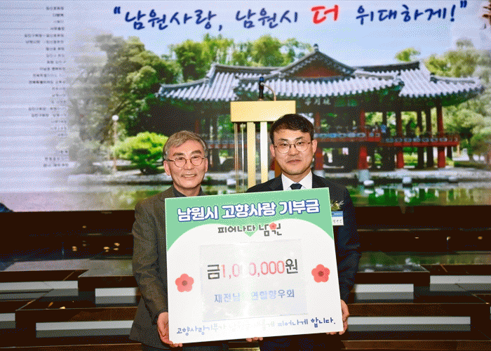 이에 민선식 부시장은 “재전남원연합향우회를 중심으로 고향 사랑의 물결이 더 퍼져나갈 것을 기대한다”며, “보내주신 소중한 기부금은 청소년 인재 육성 및 지역발전 사업에 쓰도록 하겠다”며 감사 인사를 전했다.