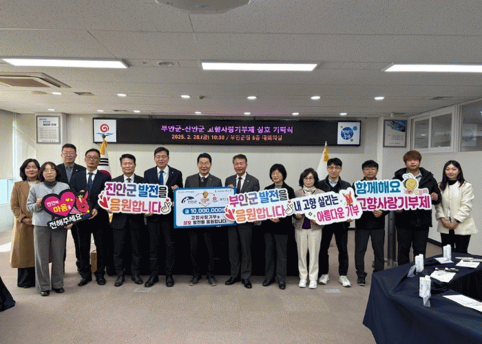 진안군에 따르면 28일, 진안-부안 각 지역의 공무원 100여명이 참여해 각 1천만원의 고향사랑기부금을 서로의 지역에 전달했으며, 추후에 각 지역의 사회단체에서 추가적으로 1천1백만원씩을 모아 전달할 예정이다.