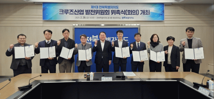 도는 28일 도청 영상회의실에서 ‘제1대 전북특별자치도 크루즈산업 발전위원회 위촉식’을 개최하고, 새만금과 부안을 중심으로 한 크루즈산업 활성화 및 크루즈선 유치 방안을 논의했다.