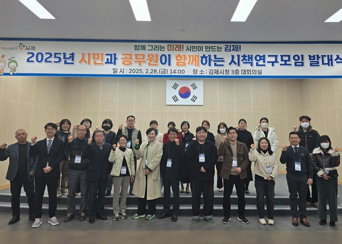 정성주 김제시장은 “김제시에 대한 애정과 열정을 바탕으로 시책연구모임에 참여해 주신 분들에 감사의 말씀을 드린다”며“창의적이고 실효성 있는 아이디어를 마음껏 제안해주시고, 보다 나은 김제시의 미래를 함께 그려 나갈 수 있도록 힘써 주시기 바란다”고 전했다.