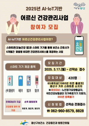 광산구 관계자는 “스마트 기술을 활용해 어르신이 건강한 생활 습관을 형성하고 만성질환을 관리할 수 있도록 자가건강관리 역량을 강화해 건강한 노후를 보낼 수 있도록 최선을 다하겠다”고 전했다.