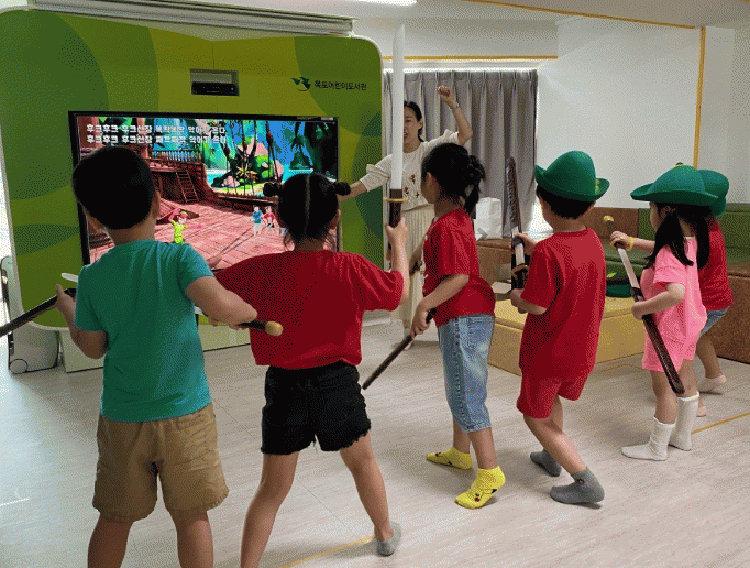 체험형 동화구연 ‘동화 속, 체험 쏙’은 3차원 가상 공간, 모션 인식 프로그램 등 최신 가상현실 기술을 동화구연에 접목해 유아들에게 대형 스크린 속 동화의 주인공이 되는 기회를 제공하는 콘텐츠다.