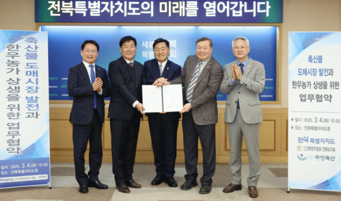 도는 4일 ㈜중앙축산농업회사법인, 전국한우협회 전북도지회와 업무협약(MOU)을 체결하고, 한우산업 경쟁력 강화를 위한 협력 체계를 구축했다.