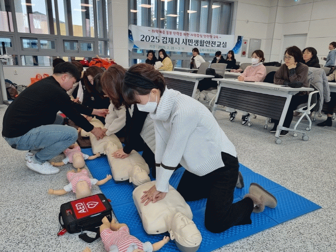 생활안전교육은 지난해 우수평생학습도시로 선정된 김제가 지속적으로 추진한 안전교육사업의 일환으로 “생명을 지키는 골든타임을 지킨다”는 교육목표로 아동/노인/장애인 등 취약계층의 안전사고 유형 및 패턴을 파악하고 대한적십자사 전북지사와 함께 협업으로 실시됐다.