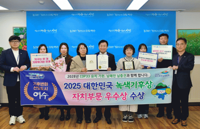 특히, 묘도 에코에너지 허브 조성, 탄소포집활용(CCUS) 클러스터 구축 등 석유화학산업 저탄소 전환과 시민공청회를 통한 ‘탄소중립·녹색성장 기본계획’ 수립, 탄소중립포인트제를 통한 2,275여 톤 온실가스 감축 등 지역사회 참여 선도에서 높은 평가를 받았다.