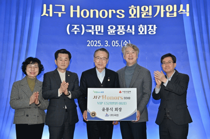 이 자리에서 윤 회장은 앞으로 5년간 매년 1000만원씩 총 5000만원을 후원하기로 약정했다. 후원금은 복지 사각지대 없는 따뜻한 공동체 착한 서구를 위한‘서구아너스 012 파트너스’민관협력사업에 사용될 예정이다.