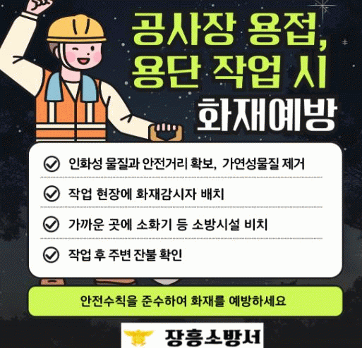장흥소방서는 “건설현장에서 발생할 수 있는 작은 불티도 큰 화재로 이어질 수 있으므로, 모든 관계자는 각별한 주의를 기울여야 한다”고 강고하며, “소방서와 협력하여 안전한 건설현장 만들기에 최선을 다하겠다고”고 전했다.