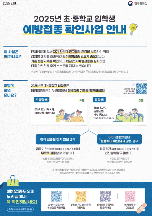 예방접종 대상자는 ▲초등학교 입학생(2018년생) ▲중학교 입학생(2012년생)이다.