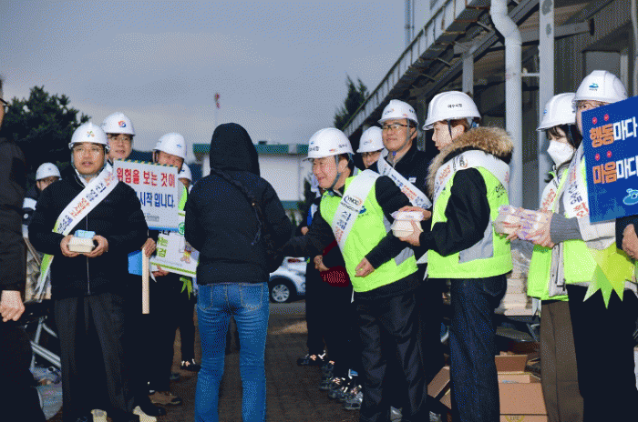 참여자들은 현장 근로자를 향해 ‘작업은 안전하게, 퇴근은 활기차게’ 안전 구호를 제창하고 홍보물을 배부하는 등 근로자 안전의식 고취에 힘썼다.