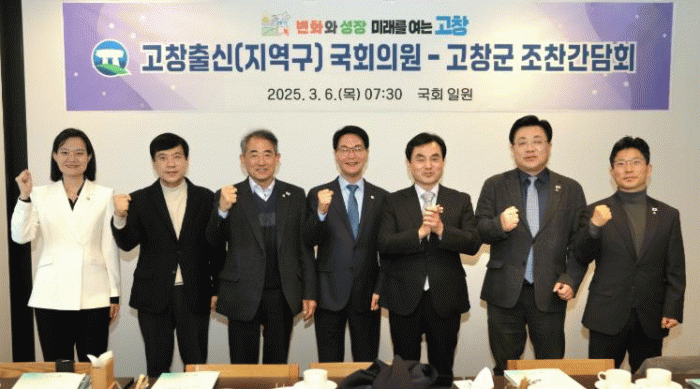 6일 고창군에 따르면 이날 오전 7시30분 국회에서 고창출신 및 지역구 국회의원 조찬간담회를 열었다.