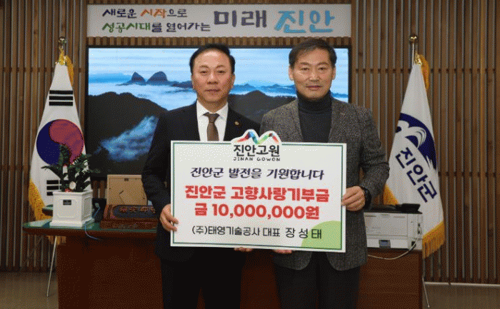 전춘성 진안군수는 “진안에 대한 변치 않는 애정과 관심으로 진안사랑을 실천해 주시는 장성태 대표님의 따뜻한 마음에 진심으로 감사드린다”면서 “기부금은 진안군 고향사랑기부제 활성화에 큰 활력이 될 것으로 기대한다”고 감사함을 표했다.