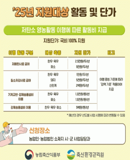 특히, 대상자로 선정되기 이전에 이미 수행한 저탄소 영농활동도 지원받을 수 있도록 제도를 개선해, 저탄소 축산을 실천하고 있는 농가들이 더욱 적극적으로 참여할 수 있도록 했다.