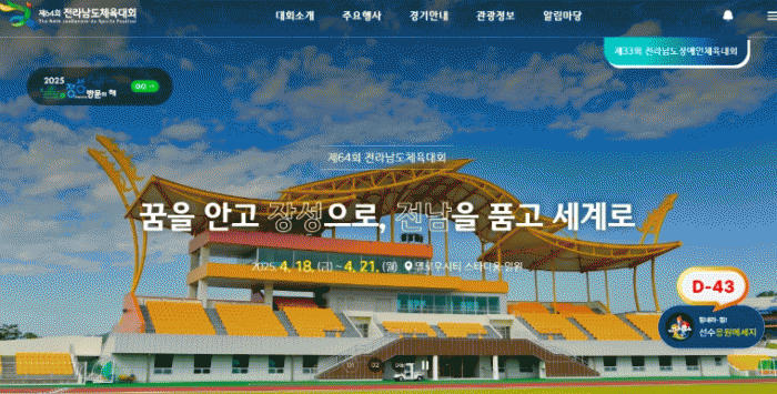 화면 우측에는 체전 개최일까지 남은 날들을 표시한 디데이(D-day)와 선수들에게 응원 메시지를 전할 수 있는 ‘응원게시판’ 바로가기도 마련돼 있다.