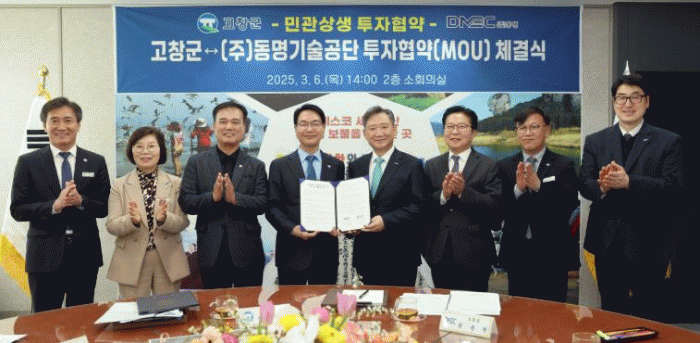 6일 고창군에 따르면 이날 오후 군청 2층 회의실에서 ㈜동명기술공단(대표이사 신완수)과 투자협약을 체결했다.