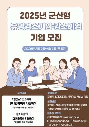 더 자세한 사항은 군산시 신성장산업과 또는 전북산학융합원으로 문의하면 된다.