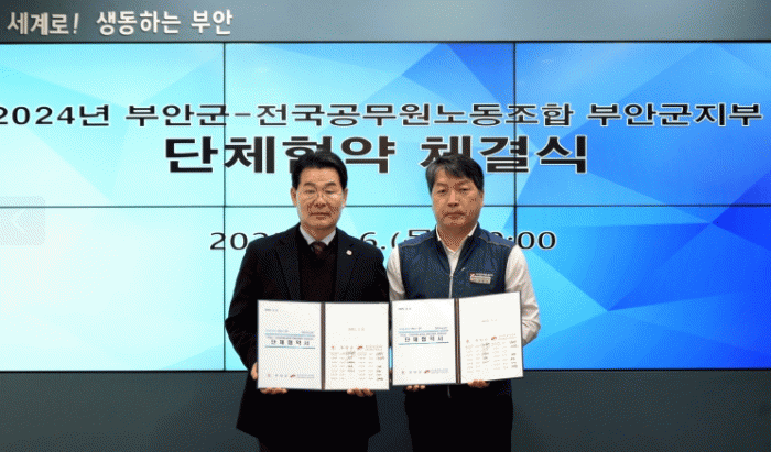 이번 단체협약은 2021년에 체결된 기존 단체협약의 유효기간이 도래함에 따라 공무원노조 부안군지부가 작년 7월 새롭게 교섭안을 요구해 8개월에 걸쳐 실무교섭과 세부 조정을 거쳐 최종 서명에 이르게 됐다.