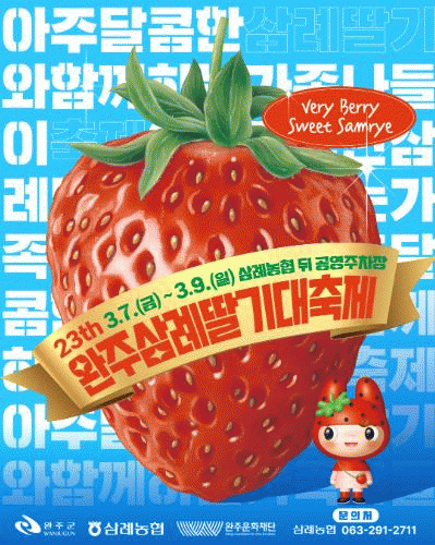 이외에도 축제장 체험부스를 비롯해 인근의 삼례읍 비비정 예술열차, 향토예술문화회관 미션을 통해 스탬프를 모으고 딸기 한 상자를 보상으로 제공하는 ‘딸기스탬프 완벽정복’과 어린이 관람객을 주 대상으로 하는 공연과 체험, 방문객이 참여하는 대형 딸기 케이크 만들기 행사까지 다채로운 이벤트가 방문객을 만나고 있다.