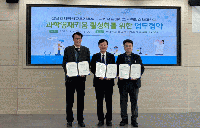 범희승 전남인재평생교육진흥원 원장은 “이번 협약을 통해 학생들이 창의적이고 실용적인 과학교육을 받을 기회를 확대하고, 이를 강화할 것”이라며 “과학 꿈나무들이 미래 과학도로 성장하도록 지속해서 지원하겠다”고 말했다.