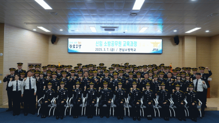 전남소방은 교육생, 가족 및 교직원 등 300여명이 참석한 가운데 제18기 소방공무원 신규과정 임용자 졸업식을 가졌다고 7일 밝혔다.