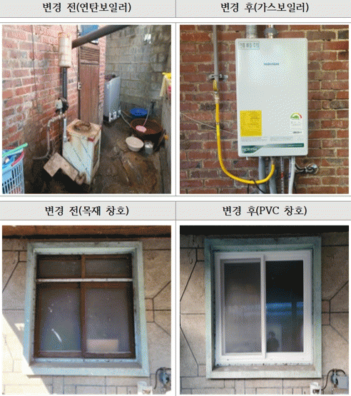 ‘에너지 성능 개선사업’은 준공연도가 20년이 경과한 노후주택 가운데 취약계층이 거주하는 주택을 대상으로 노후 창호를 PVC 창호로, 연탄보일러를 가스보일러로 교체하는 에너지 성능 개선 공사를 벌인 뒤 온실가스 감축량을 확인하는 방식이다.