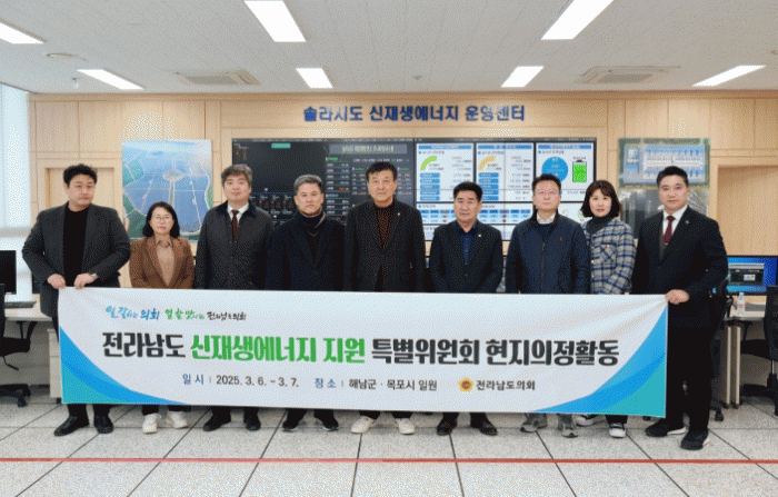 또한, 특별위원회 위원들은 전남도 관련 실·국장으로부터 신재생에너지 현안에 대한 보고를 받고, 신재생에너지 발전방안을 논의하는 시간을 가졌다.