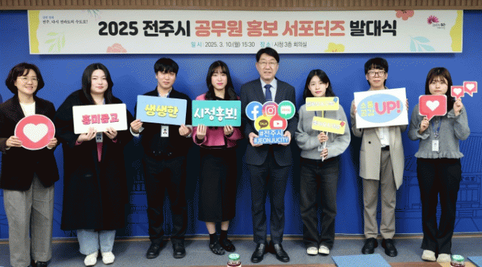 시는 10일 시청 3층 회의실에서 ‘2025 전주시 공무원 홍보 서포터즈’ 발대식을 개최하고, 올해 선발된 공무원 홍보 서포터즈 6명에게 위촉장을 수여했다.