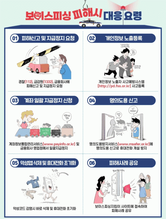 김준철 전남도 일자리경제과장은 “모르는 전화를 받았을 때 금융 관련 요청이 있으면 즉시 대응하지 말고 주변 사람들에게 물어보고 대응하고, 피해가 발생했을 때 112(경찰)나 1332(금융감독원)에 피해 신고를 한 후 계좌 지급 정지를 요청하는 방식으로 대응해야 한다”고 강조했다.
