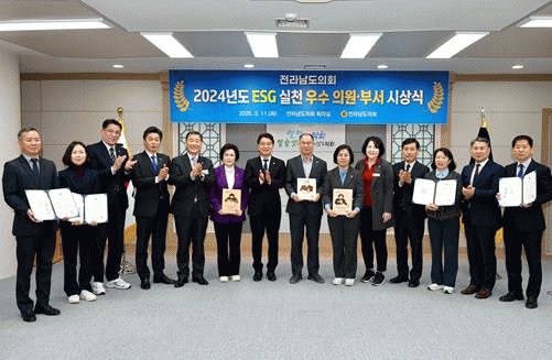 한편, 전라남도의회는 2023년부터 ESG를 실천해 오고 있으며, 지방의회 최초로 이에스지(ESG) 실천 조례를 제정하는 등 ESG 가치 확산을 위한 앞장서 왔다.