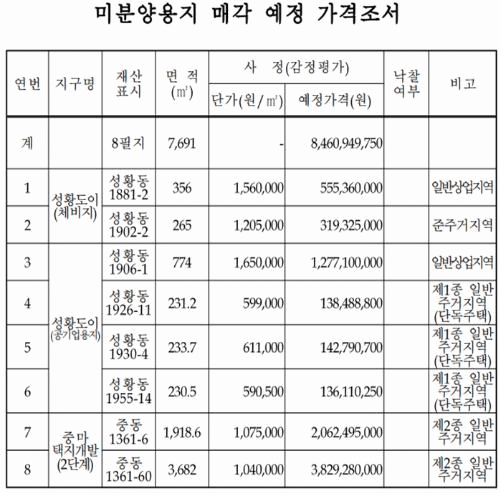 해당 필지는 성황 · 도이지구와 중마택지개발지구 내 총 8필지로, 광양시의 핵심 개발 지역에 위치해 있어 시민들의 관심이 집중될 것으로 예상된다.