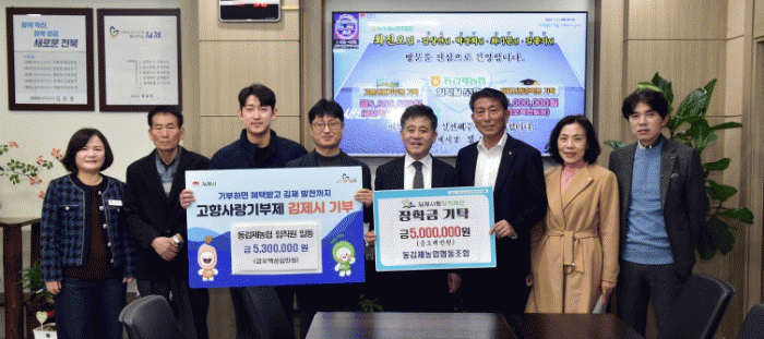 정성주 김제시장은 “김제시 발전과 지역 인재 육성을 위하여 기부금으로 따뜻한 마음을 전달해준 동김제농협에 깊은 감사의 마음을 전한다.”며“소중한 기부금으로 많은 시민과 기부자가 만족할 수 있는 사업을 발굴하여 추진하겠다”고 말했다.