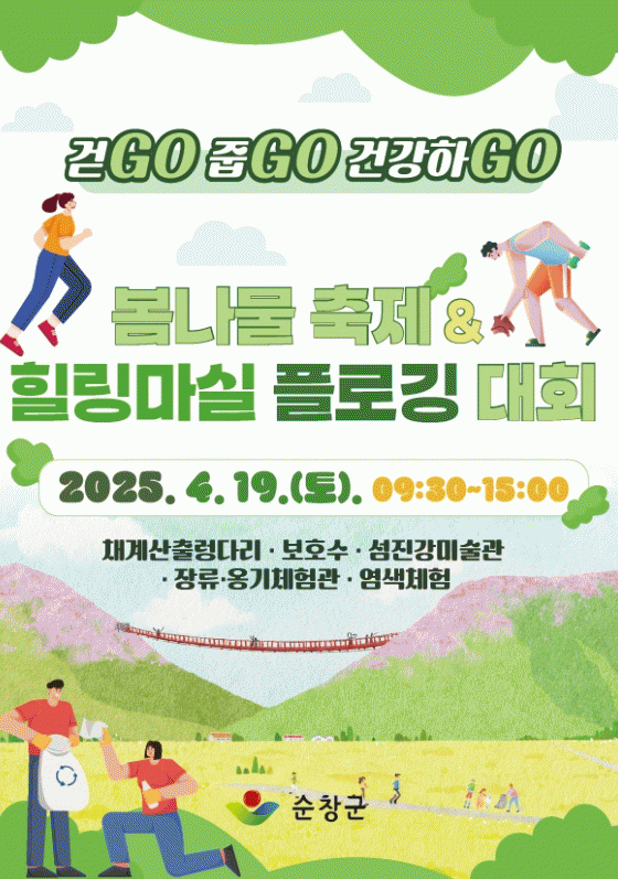 또한, 플로깅을 마친 후에는 같은날 순창읍 양지천에서 열리는‘순창 참두릅여행 축제’에 참여해 더욱 다채로운 경험을 이어갈 수 있다. 올해 처음 열리는 참두릅여행 축제는 순창의 대표 봄나물인 참두릅을 활용한 다양한 음식을 맛볼 수 있으며, 지역 농산물을 이용한 체험프로그램도 운영될 예정이다.