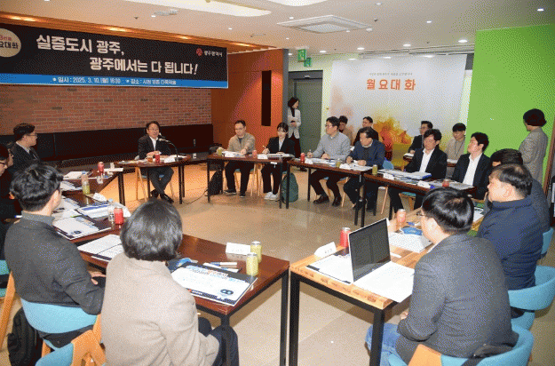 강기정 시장이 주재한 이날 월요대화에는 장범석 ㈜BS소프트 대표, 홍원택 엔에이치네트웍스㈜ 이사, 이지훈 써니팩토리 대표, 송광철 엘탑 대표, 김민현 모바휠 대표, 지혜빈 이퓨월드 대표, 김승연 파이어버스터랩 대표, 이화정 디어디어 대표, 손여정 ㈜명신메디칼 실장, 김강 ㈜세연이앤에스 대표, 이병국 ㈜동이기술 대표 등 실증기업 관계자들과 주재희 광주시 경제창업국장, 손두영 광주시 미래산업총괄관, 송병호 광주테크노파크 산업기술실증센터장, 용승현 인공지능산업융합사업단 창업지원팀장 등이 참석했다.