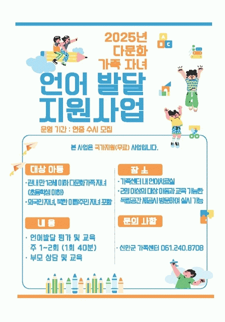 신안군은 앞으로도 다문화가족 자녀들의 언어발달을 위한 맞춤형 지원을 강화해, 아이들이 사회적·정서적 안정 속에서 성장할 수 있도록 지속적인 관심과 노력을 기울일 계획이다.