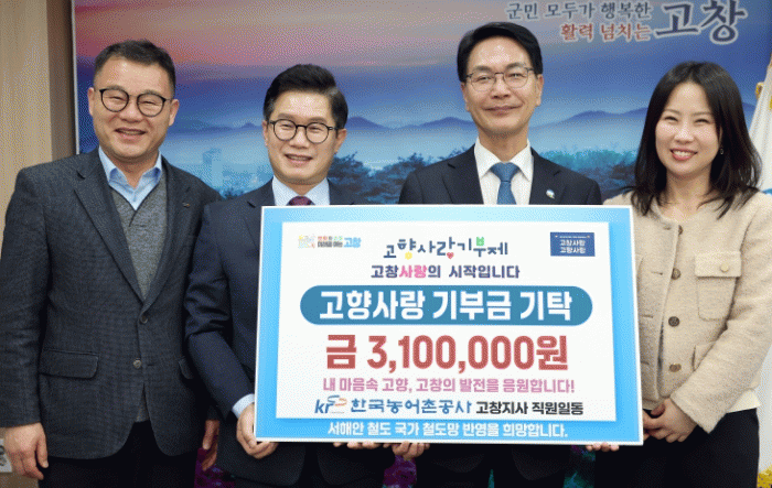고향사랑기부금 기탁식에서 임근춘 고창지사장은 “지역사회의 일원으로서 한국농어촌공사 고창지사 임직원들의 고창 발전 염원을 담은 기부금을 기탁하게 됐다.”라며 “농어촌공사 고창지사 임직원들은 앞으로도 고창군의 농업과 지역발전을 위해 지역사회와 함께 하겠다.”라고 말했다.