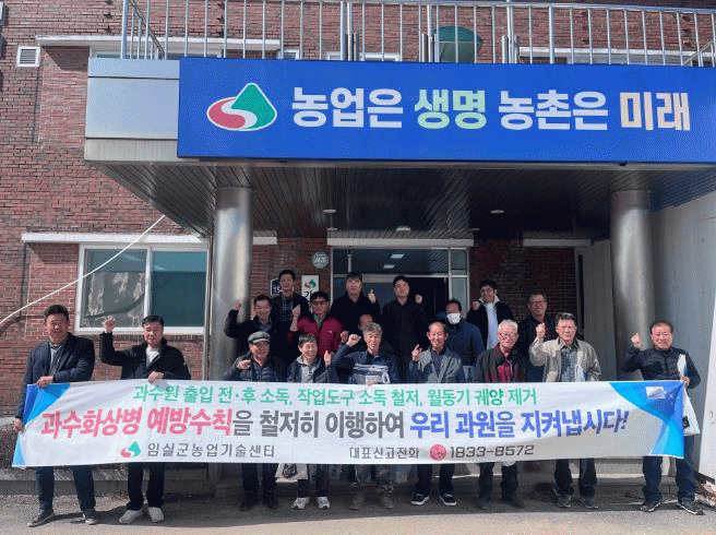 농업기술센터 장취균 소장은“과수화상병 발생 예방을 위해서는 무엇보다 적기 방제가 중요하다”며“임실군 인근 지역에서 과수화상병이 발생한 만큼 자가 예찰과 청결한 과원 관리에 적극적인 참여를 당부한다”고 말했다.