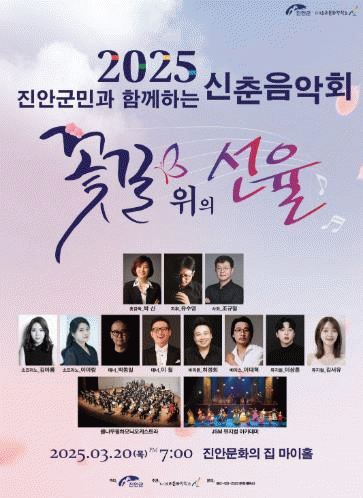 김종길 문화체육과장은 “이번 음악회가 봄의 시작을 알리는 특별한 시간이 되기를 바란다”라며 “온 가족이 함께 즐길 수 있는 따뜻하고 풍성한 공연을 준비했으니 많은 군민들께서 참석하셔서 봄의 선율을 느끼시길 바란다”고 전했다.