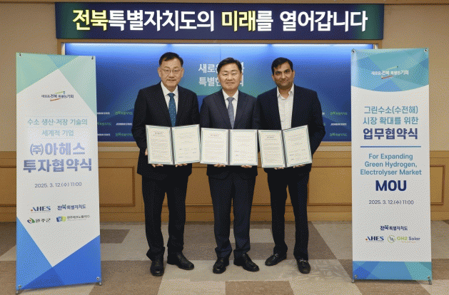 이날 인도 그린수소 생산 기업인 GH2 Solar Ltd.사와 ㈜아헤스, 전라특별자치도 간의 업무협약도 이뤄졌다.