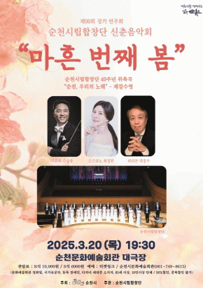 시 관계자는 “이번 신춘음악회를 통해 지역 예술인들과의 협연으로 대한민국 문화도시 순천의 문화적 자긍심을 높이는 계기가 될 것”이라며, “가족, 연인 등과 함께 새로움과 설렘, 기대감이 가득한 봄을 맞이하시길 바란다”고 전했다.