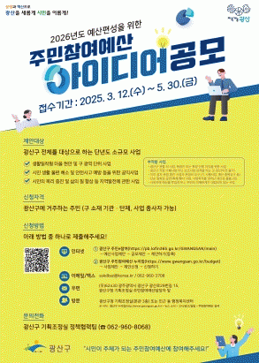 주민참여예산제에 대한 자세한 안내는 광산구 기획조정실로 문의하면 된다.