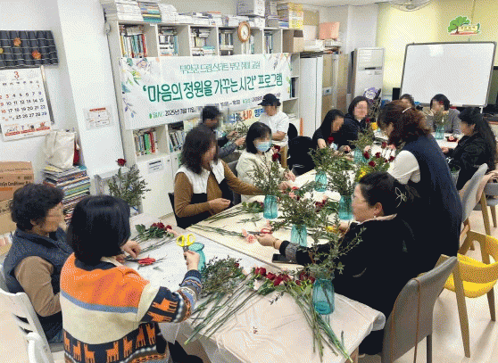 주요 프로그램은 ▲작은 지구정원 ▲메리골드 꽃차 ▲압화 스탠드 ▲병속정원 하바리움 ▲압화 캘리액자 만들기 등 매주 다양한 내용으로 구성됐다.